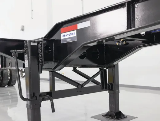 Front Bolster (20’ loaded): 5.9” wide x 3/8” thick top plate, 1/4” web, 5.9” x 5/16” I-beam with two cantilever retractable twist locks