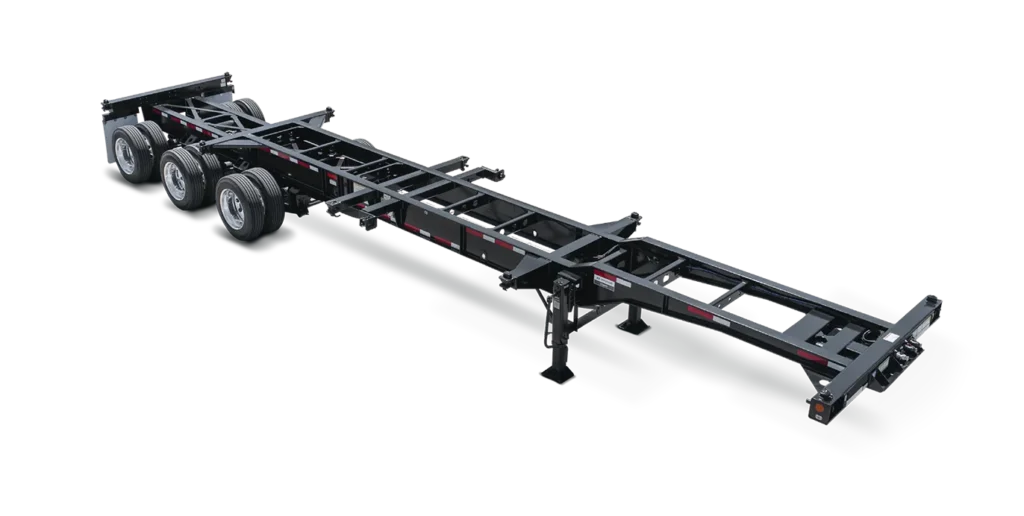 Built for heavy-duty hauls, this tri-axle chassis provides increased capacity and stability. The 12-pin locking design allows it to carry one 20’ container, one 40’ container, or two empty 20’ containers.